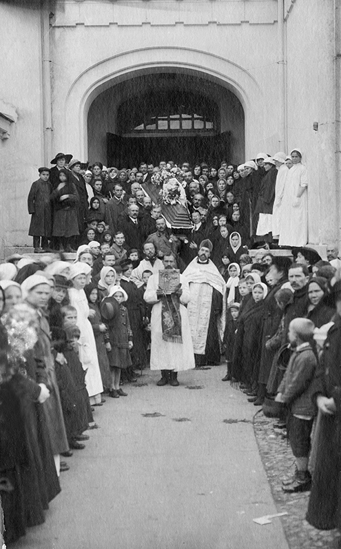 1917 год. Похороны Н. Г. Макиевского-Зубка, как символ уходящего благополучия. Панихиду служил о. Николай (справа)