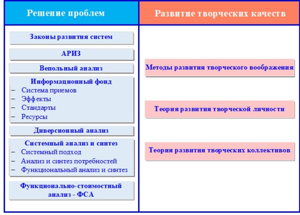 Эта технология позволяет решать творческие задачи, используя специальные законы, методы, правила и инструменты.