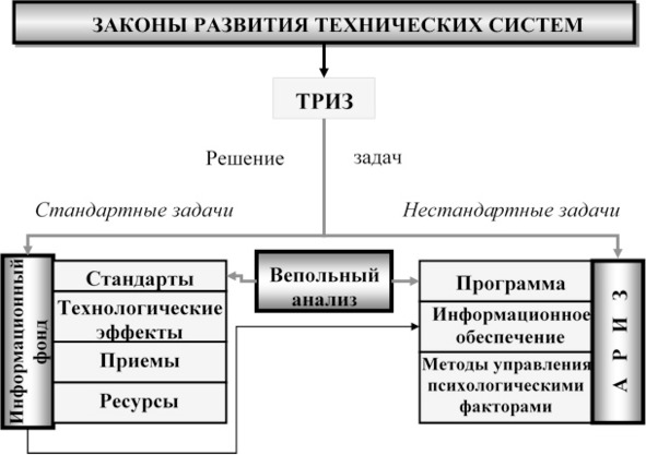 Упрощенная структурная схема ТРИЗ для функции решения задач приведена на рис. 2.2. Кратко опишем каждую из частей ТРИЗ.