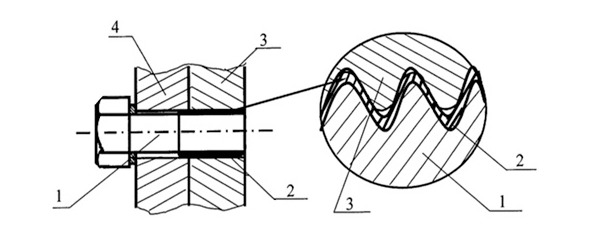 1 – болт; 2 – слой нитинола; 3, 4 – соединяемые детали.