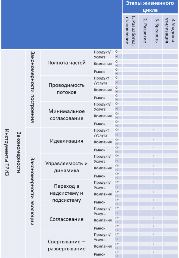 Кроме того, желательно провести анализ продвижения продукта (услуги) на рынок, который проводится по специальной методике, разработанной автором66. Эта методика использует закономерности развития продукта, копании и рынка и их взаимодействие. Особенно это важно для компаний стартап и инвесторов этих компаний