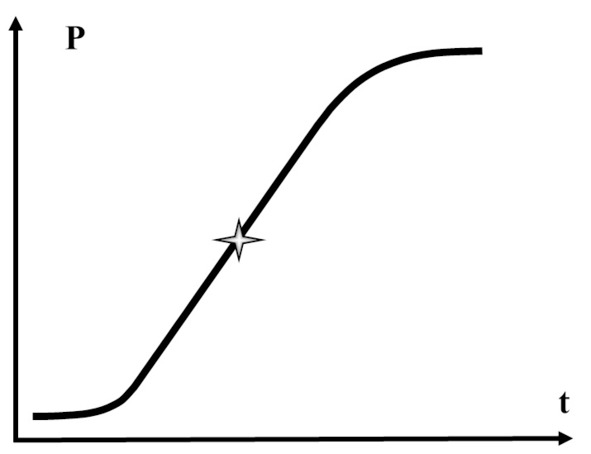 Анализ по S-кривой осуществляется по основным параметрам системы, а затем определяют суммарную или среднеквадратичную оценку развития системы. В результате получают картину развития системы по каждому из ее важных параметров и общую картину развития системы. Звездочкой на графике (рис. 7.2) показан уровень развития исследуемой системы.