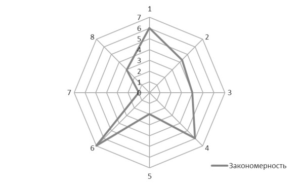 Диаграмма показывает, по каким из закономерностей система развита больше, а по каким меньше. В соответствии с этим выбирается стратегия дальнейшего развития системы.