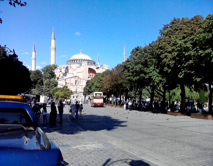 Проехав в трамвае около получаса, автор понял, что едет не туда. Вместо исторического центра появились городские окраины и «неисторические» новостройки. Явно надо было ехать в обратном направлении. Выйдя из трамвая, автор не встретил ни одного человека, что бы уточнить ситуацию. Рядом располагалось предприятие, как оказалось завод средиземноморского пива Effes. К счастью охранник, к которому обратился автор, на ключевое слово «София» указал на трамвай. Автор попытался поехать в обратную сторону. Но турникет на трамвайной остановке его не пропустил. Деньги (лиры) турник не брал, евро – то же. На карту «Виза» не реагировал. Автор слегка растерялся. Но, как и в Нью-Йорке, нашелся добрый человек, охранник, вышел из будки и пропустил на остановку, бесплатно! Через час, проехав пол города, автор прибыл на площадь Айя Софья.