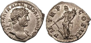 Илл. 2. Денарий Адриана (117–138). На реверсе Фортуна с корабельным рулём в виде креста