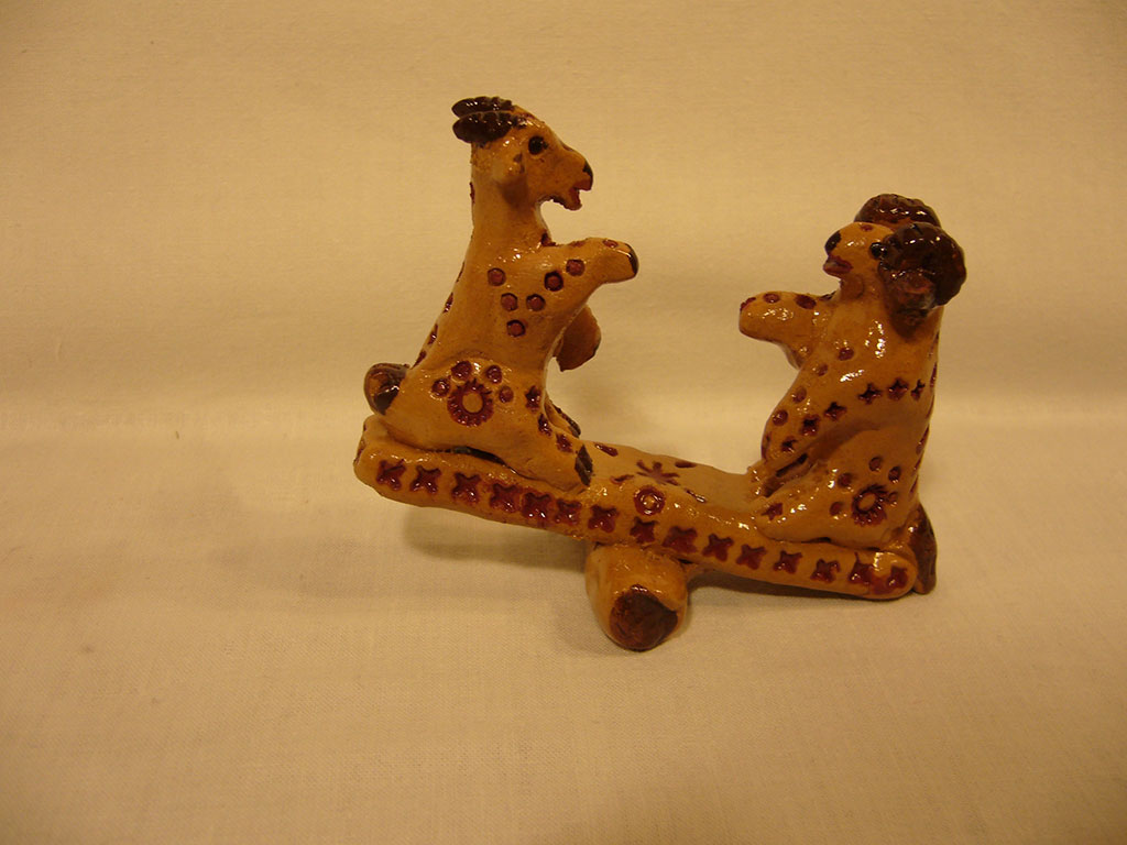 «На качелях». Жжёнка. Жёлто-оранжевая. Подкраска только коричневым пигментом Дровяной обжиг. (Из фондов музея им. А.Н.Радищева)