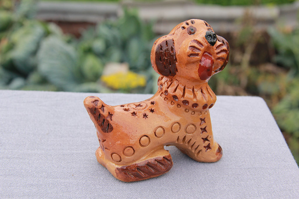 «Полкан». Жжёнка. Цветовая растяжка идёт от светло-жёлтого до светло-оранжевого цвета. Подкраска коричневым пигментом. Тропы подкрашены выборочно. Дровяной обжиг. (Из фондов музея им. А.Н.Радищева)