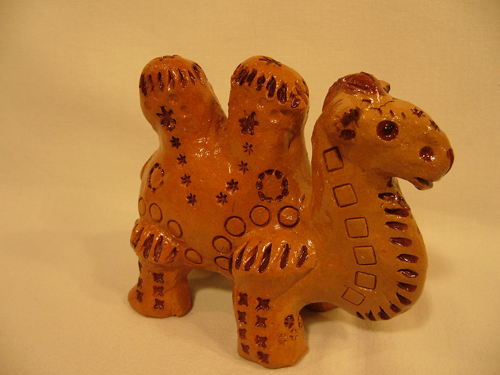 «Верблюд». Жжёнка. Жёлто-оранжевая. Подкраска коричневым пигментом. Дровяной обжиг. (Из фондов музея им. А.Н.Радищева)