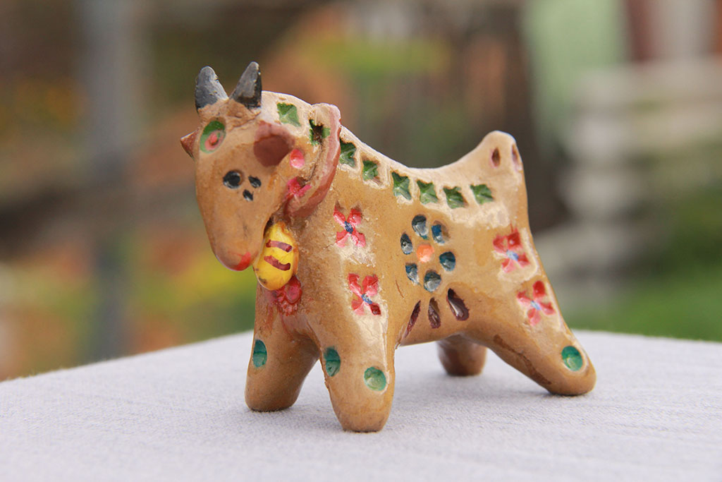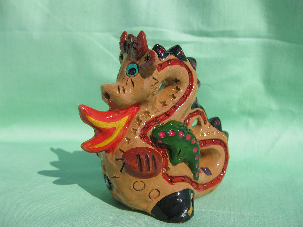 Совершенно верно – глины такого цвета бывают не везде, а слепить саратовскую игрушку хочется. Но, если нет таких глин, то лепите из других по цвету глин, а вот роспись должна быть обязательно геометрическая и ямчатая. Без этого никак.