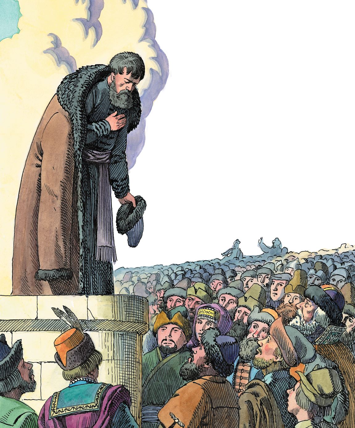 Поднялся один из горожан. Заговорили о бедственном положении Москвы, всей Руси.