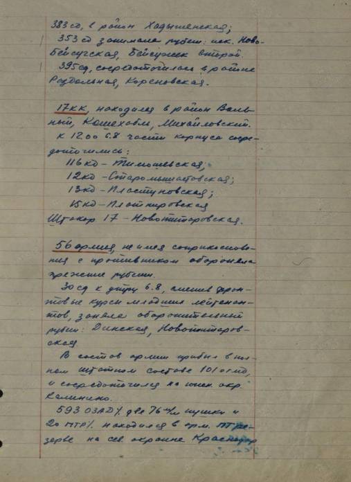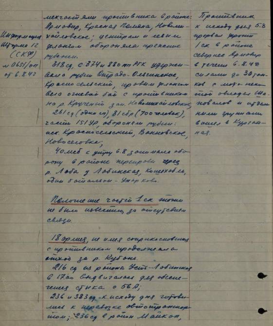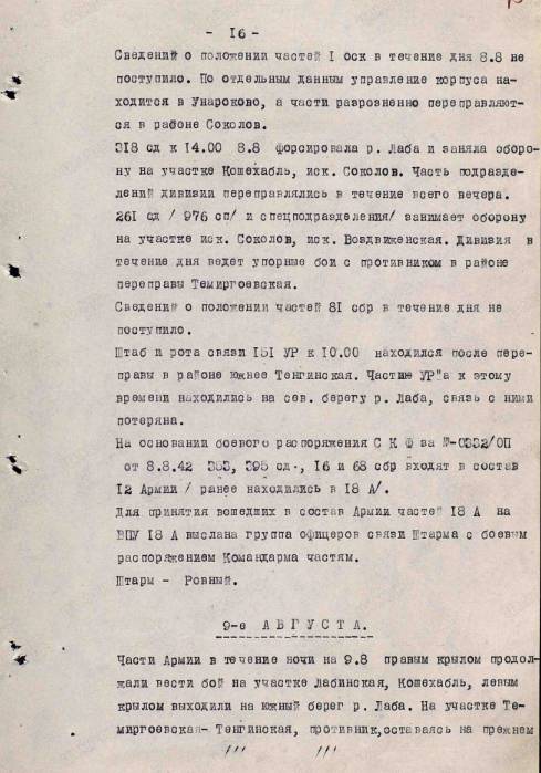 Итак, только вот из этого документа мы впервые и точно узнаем, важнейший для нас факт, что г. Усть-Лабинск в августе 1942 г. обороняла 216 сд!