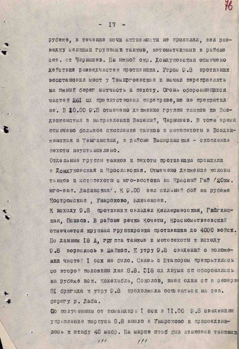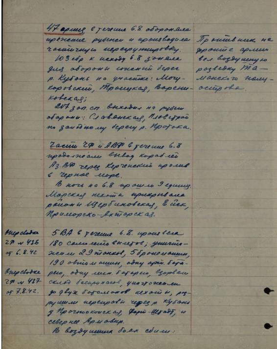 А теперь я предлагаю вам выписку из ЖБД Северокавказского фронта т. е. более вышестоящего штаба чем штаб 18 армии штаба в которой мы видим картину боев за Кубань летом 1942 г. совсем по-другому.