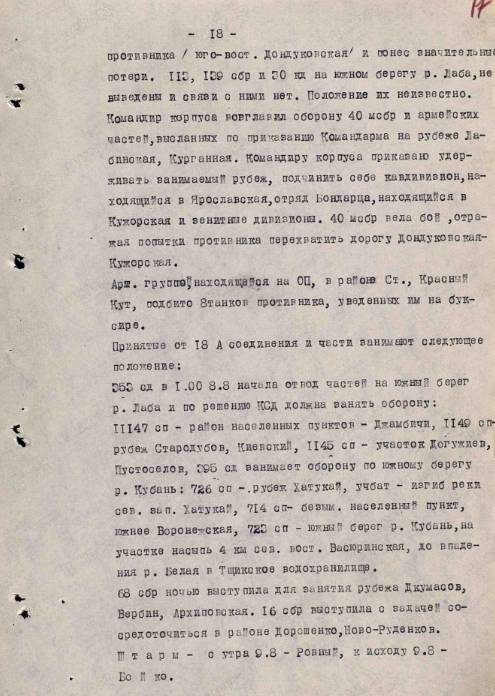 А теперь уважаемый читатель я впервые хочу вам предоставить редкую возможность самому ознакомится с уникальным документом «Журналом БД 18 Армии РККА» которая обороняла и Усть-Лабинск и защищала г. Краснодар.