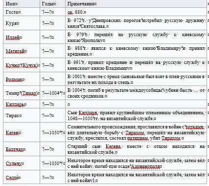 Известные ПАЦИНАКСКИЕ ханы