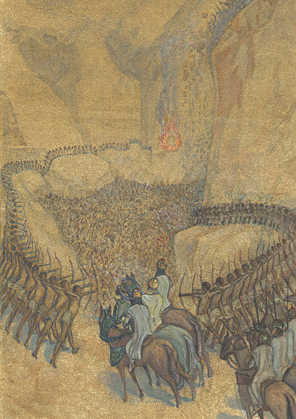 Когда их авангард приблизился к засаде, мы сбросили на них с соседних скал груды камней, специально подготовленных на этот случай. Наши стрелы в них лились дождем! А камни били градом! От неожиданности дрогнули первые ряды, и повернули вспять, при этом, налетев на тех, кто шёл за ними. Началась паника, давка, свалка! Конные давили пеших, а те толкали и валили их на трупы, уже погибших с нашей помощью, врагов. В узкой лощине у них не было возможности развернуться в боевой порядок. Так, слой за слоем своими трупами они заваливали выход из ущелья. Окончательно смешавшись, враг начал отступать. Схватка продолжалась. Они дрались уже между собой за право первым вырваться из Джаханнама3. Нам только оставалось бить их в спины. Что мы делали до самой темноты. Поняв, что здесь пробиться невозможно, Абдул-Азиз подал команду к отступленью, и его войско стало отходить. Пришлось врагу погибнуть без сражения! Синарийцы даже не смогли придать земле погибших воинов».