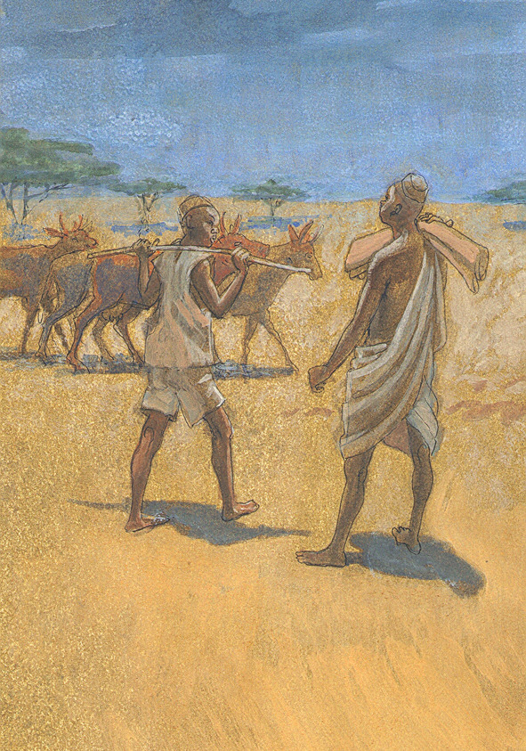 Вдруг Кодаго взмолился: «Не могу! Устал! Будто сам шайтан на мне скакал! Давайте бросим хотя бы часть маниоки! Нет мочи тащить такую тяжесть!»
