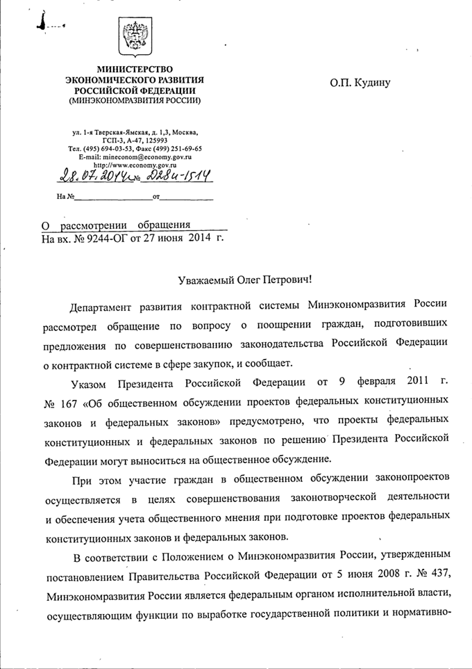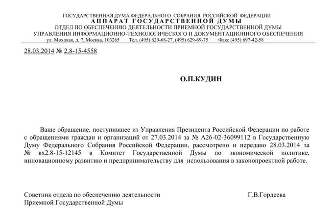 От. Кудина Олега Петровича адрес