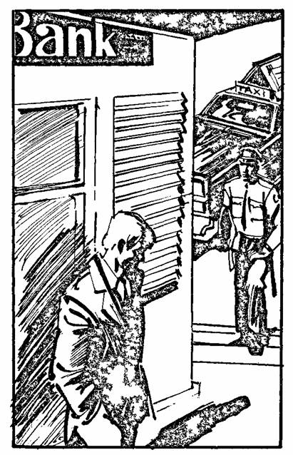 В гараже осмотрел машину, проверил, полон ли бак, протер стекла, сел и поехал в банк. В тот, где хранил свои деньги.