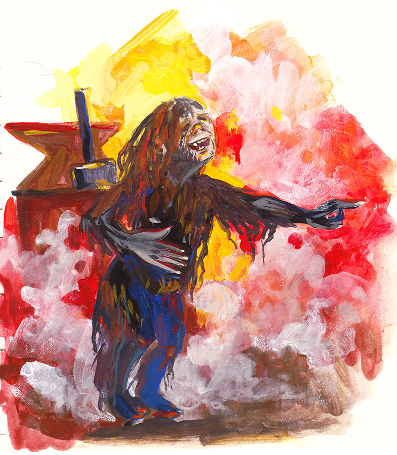 В затылок летели острое зубило и клещи. Едва успев развернуться, Кий отбил тяжёлые железяки двумя ударами клинка. За спиной вновь закричал Горшок, на этот раз от боли. Чудище впилось когтями в кисти и расцарапывало их до крови.