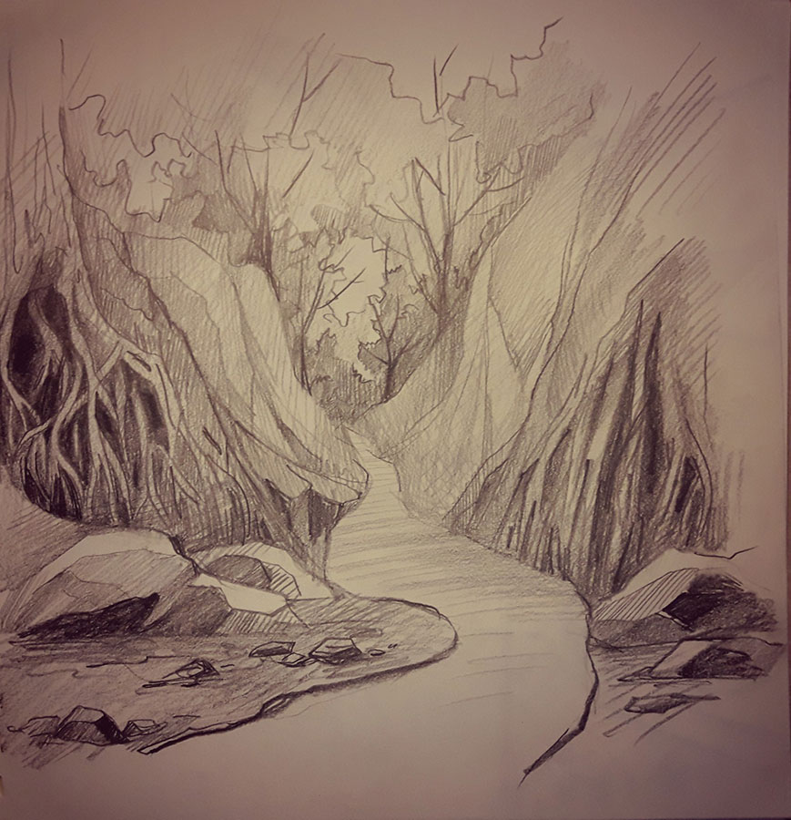На пути том лежал огромный камень, забираться на который пришлось, подсаживая Горшка; а тому, в свою очередь, подавать Кию руку, таща его вверх. С камня же спускались вырубленные ступени, ведущие путников в большой овраг, скрывающий узкую извилистую тропинку высокими земляными стенами. Идя под тёмным вечерним небом, среди торчащих по бокам корней, было совсем не видать того, что находилось сверху. Лишь редкие деревья подсказывали, что странствие наших героев всё ещё проходит по перелескам в краях дреговичей.