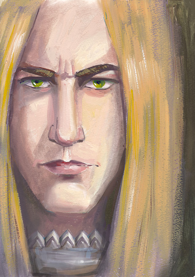 Хозяин замка был высокого роста, крепок, но не широк. Блестящие лёгкие серебристые доспехи красовались на нём как на настоящем царевиче. Густые светлые волосы, цвета свежей жёлтой соломы, спадали до самых плеч.