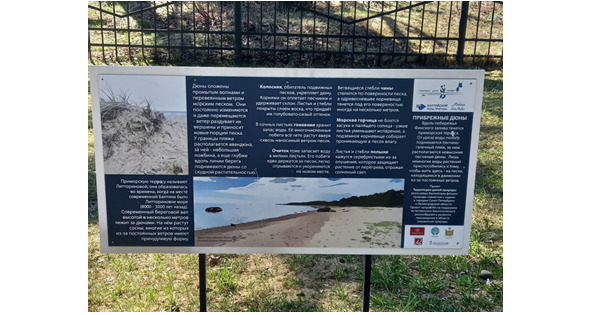 В Зеленогорском парке культуры и отдыха в 2022 году презентовали новую уникальную клумбу – «Прибрежные дюны». Расположена она у входа на Золотой пляж. Рядом с клумбой установлен информационный стенд: Прибрежные дюны.