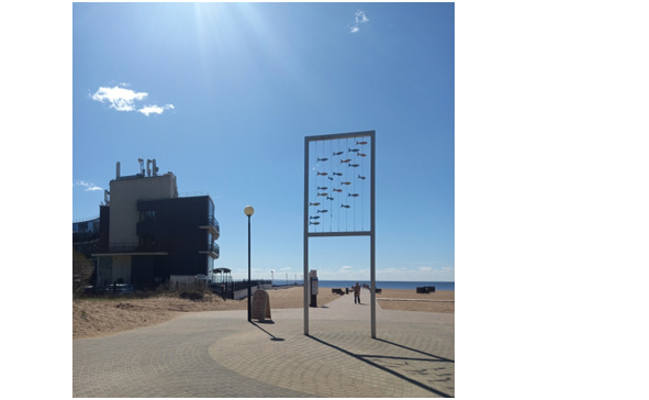 Главная аллея заканчивается у пляжа «Золотой», где вас встречает стенд «Рыбки».