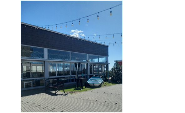 Далее, перед выходом на набережную, у павильона ресторана встречаем, ожидающих плаванья весла и лодку.