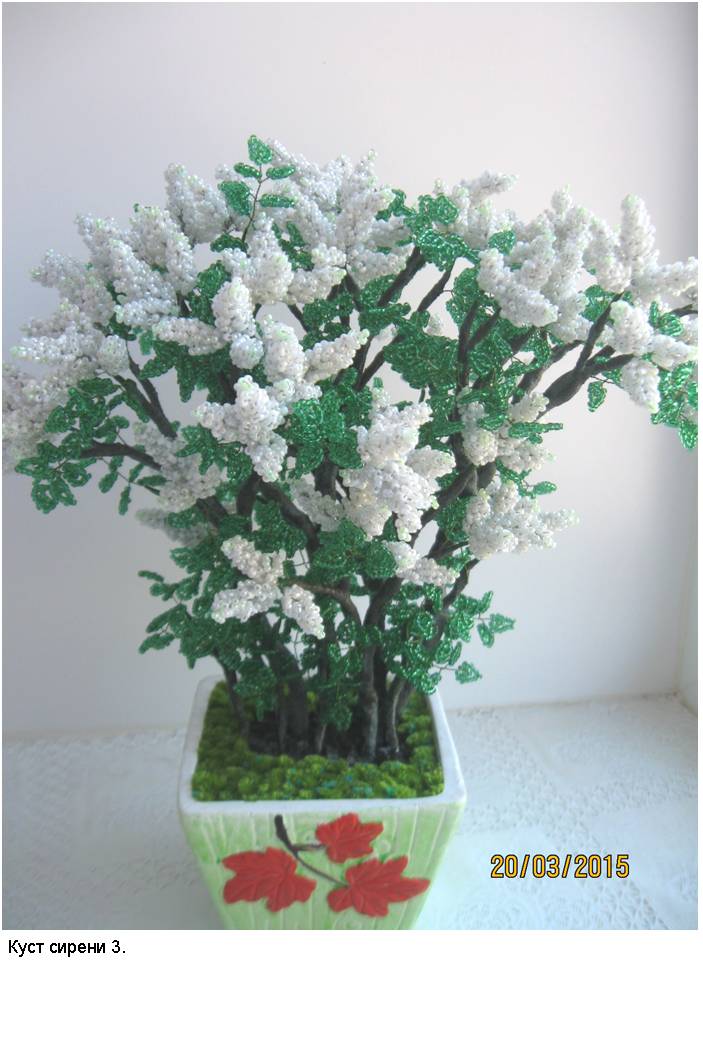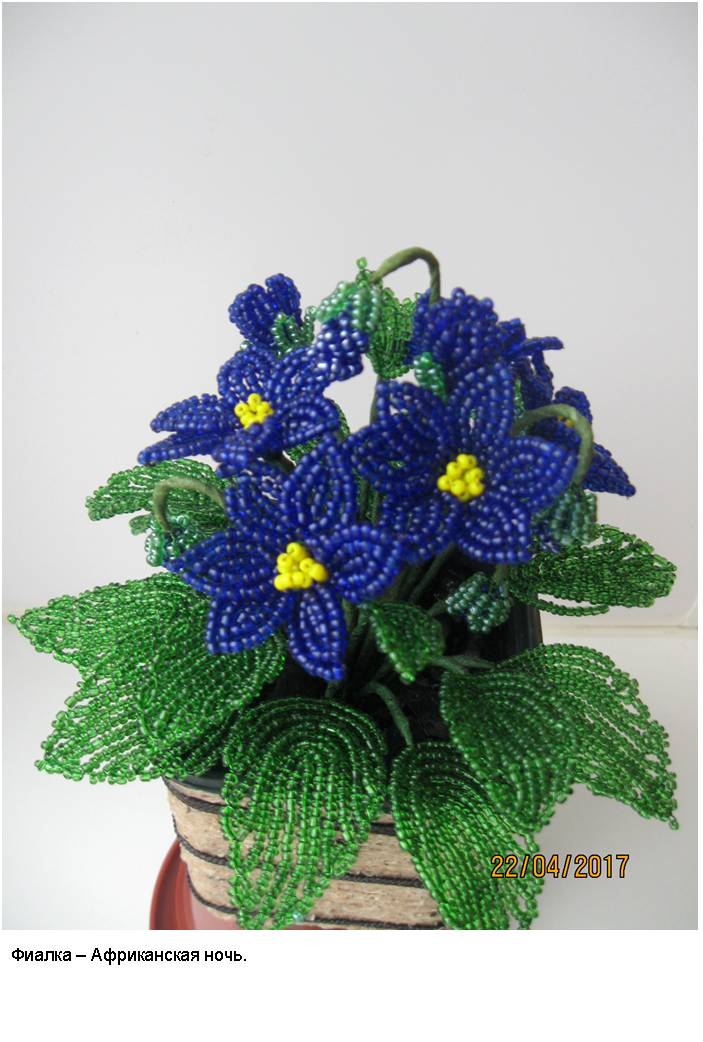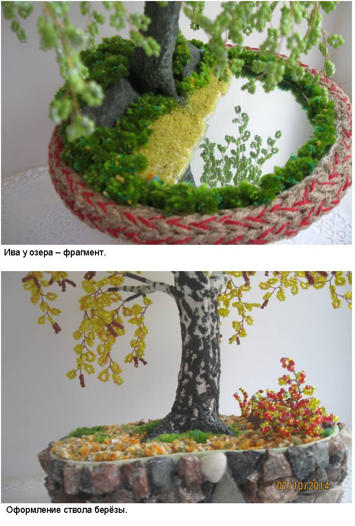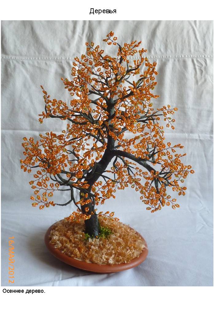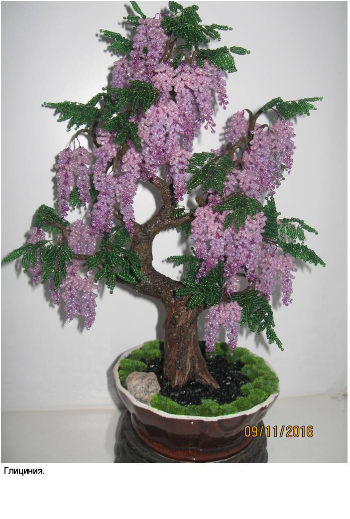 В фотоальбоме представлены фотографии наиболее интересных деревьев из бисера (30 изображений) и цветов из бисера (30 изображений), выполненных автором в процессе освоения рукоделия и достижения определённого мастерства в области изготовления изделий из бисера.