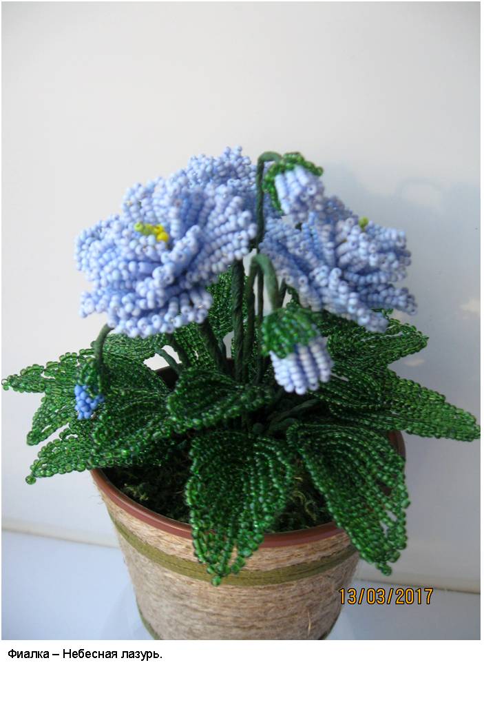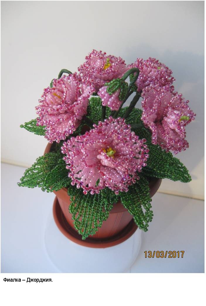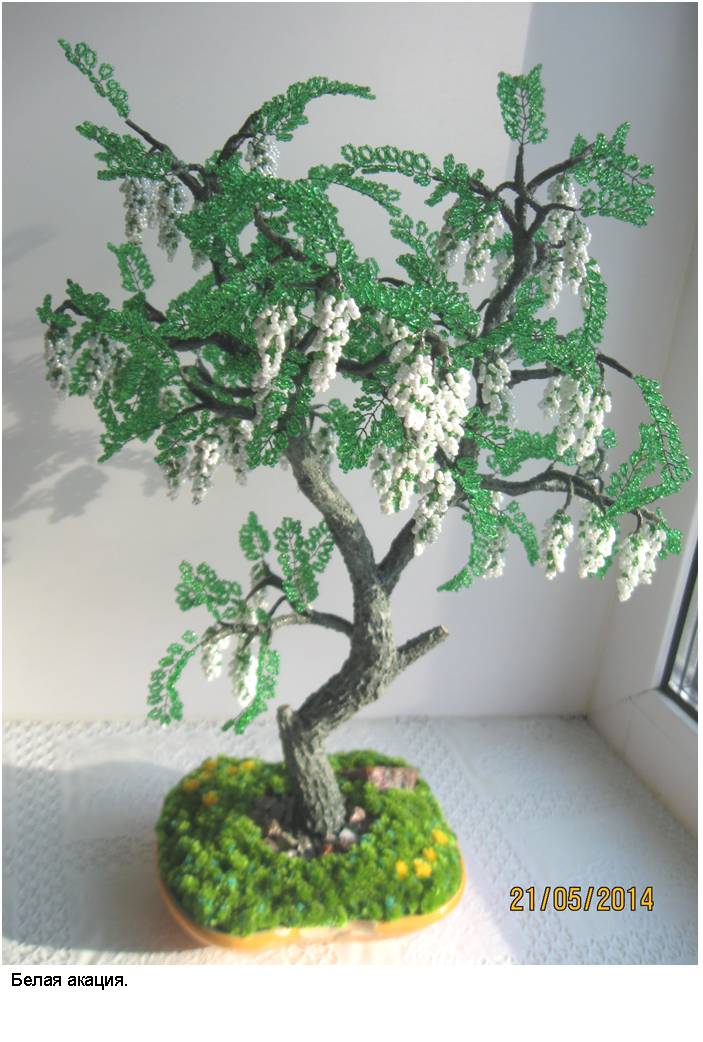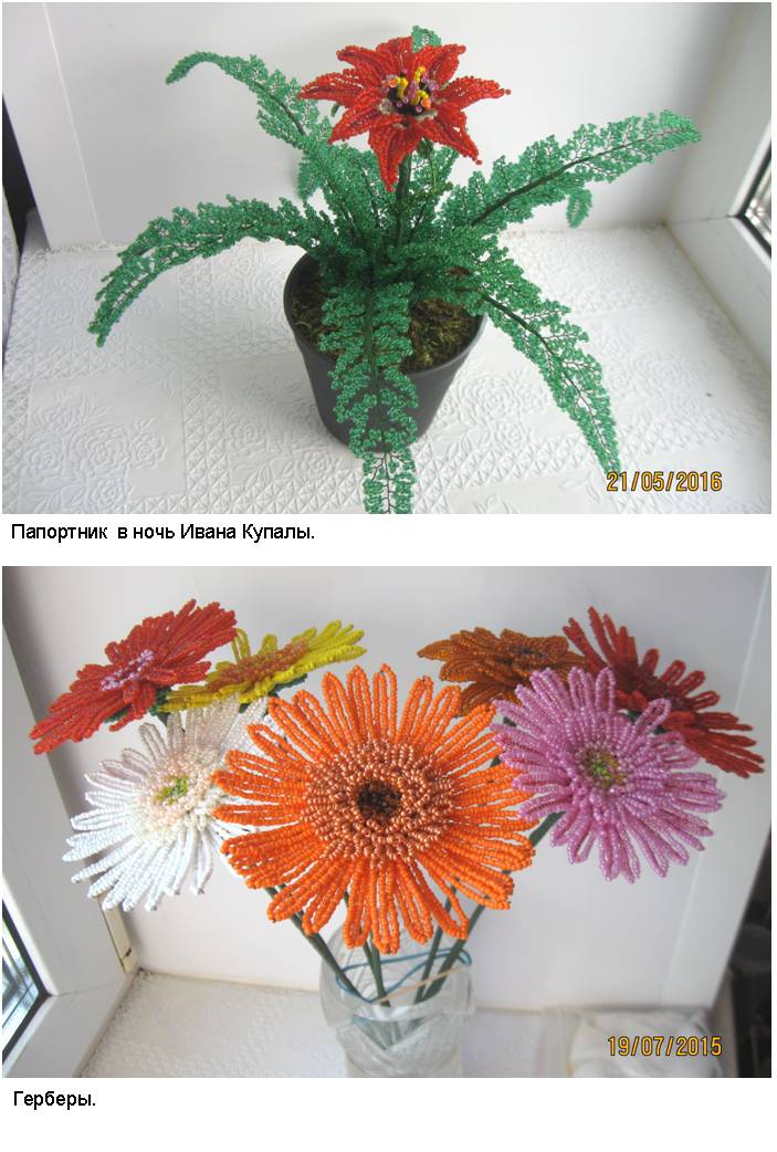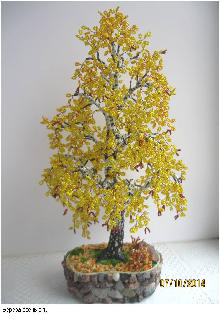 В фотоальбоме представлены фотографии наиболее интересных деревьев из бисера (30 изображений) и цветов из бисера (30 изображений), выполненных автором в процессе освоения рукоделия и достижения определённого мастерства в области изготовления изделий из бисера.