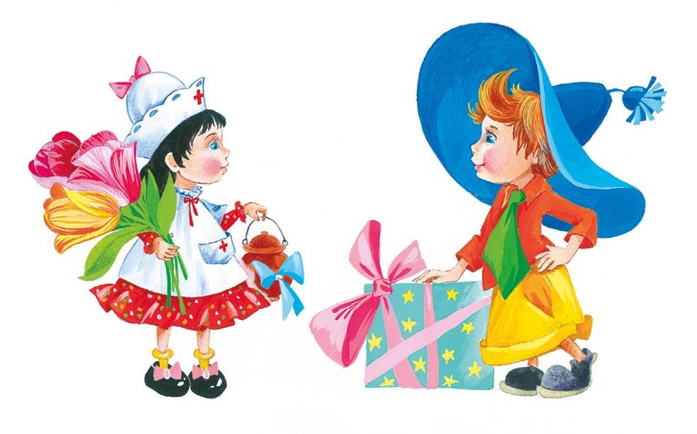 – Спасибо, спасибо! – едва успевал отвечать Пилюлькин, получая подарки. При этих словах на лице его не было особой радости, а в голове сидела одна мысль: «Ну как всегда! Тюбик – с очередным портретом, Знайка – с книгой, Сиропчик – с банкой варенья. А вот ещё и Гусля, – доктор поморщился, – со своей сверхгромкой музыкой!»