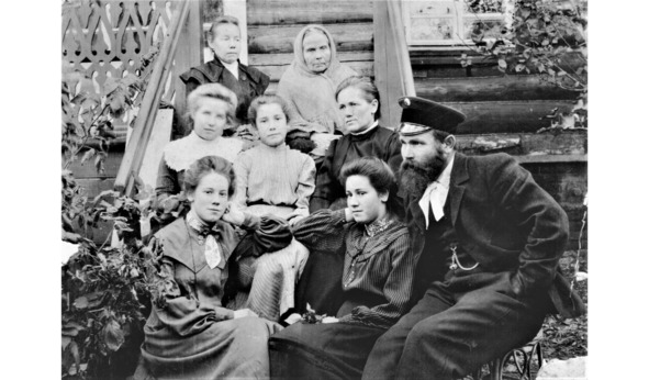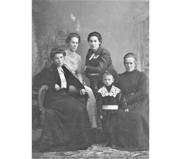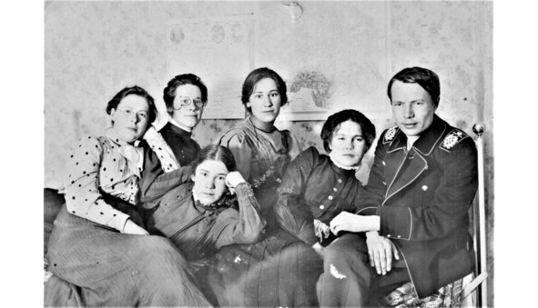 Женя, Елизавета Петровна, Мария Петровна, Екатерина Петровна Вознесенские, Катя и Александр Владимирович Тюрин. Уфа, 1908 год