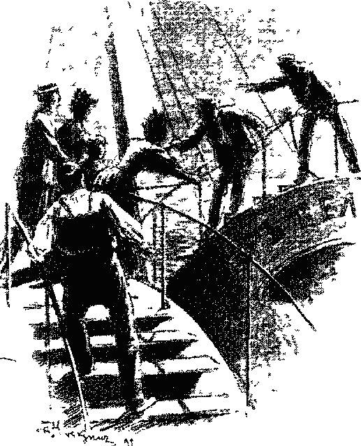 И, перевѣсившись за перила рубки, онъ началъ кричать матросамъ.
