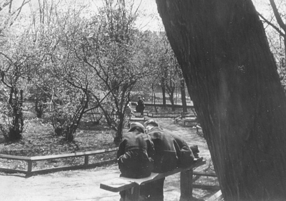 Двор ограждали деревянные сараи, с которых зимой в наметенные сугробы прыгали местные мальчишки. Возле одного сарая разгуливали куры; мама покупала у их хозяйки яйца. Вдоль южного, более нарядного фасада был разбит сквер, в обиходе называемый «Цейдлер» – по фамилии одного из первых профессоров клиники. От улицы Льва Толстого (прежней Архиерейской) его отделяла островерхая решетка на высоком гранитном фундаменте. К началу моего детства саженцы успели превратиться во взрослые деревья, преимущественно – клены и несколько уже необъятных ив и тополей. Среди них были проложены дорожки со скамейками для моциона выздоравливающих пациентов. В сквер же выходила широкими ступенями третья дверь, обрамленная серым рустованным камнем, с маской на фронтоне.