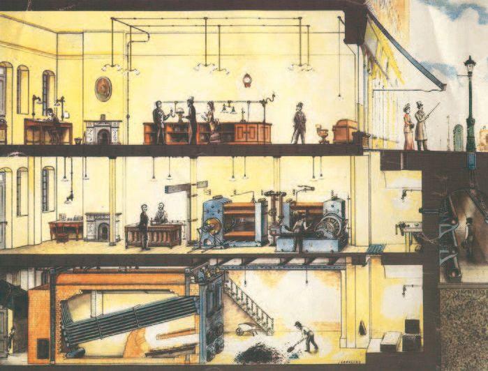 Рис. 2. Чертежи первой крупной центральной электростанции Эдисона на Пирл-стрит, 257 в Нью-Йорке, 1882 г.