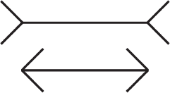 Я не видел ни одного издания, в том числе Канемана, где бы правильно преподносился весь глубокий смысл иллюзии Мюллера – Лайера. Посмотрите ниже: вы видите на ней две абсолютно ровные и одинаковые линии. Я сейчас настаиваю на том, чтобы вы не переворачивали страницу, взяли линейку и измерили эти две линии. Я хочу, чтобы с помощью линейки вы убедились, что линии одинаковые.