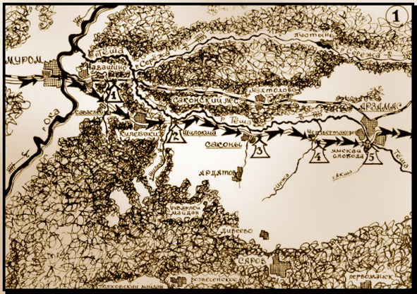 «А третий стан под Саконским городищем». От Шилокши до Сакон разогнались, поспешают уже 30 километров, никуда не сворачивая по той же большой дороге. Ил.6.
