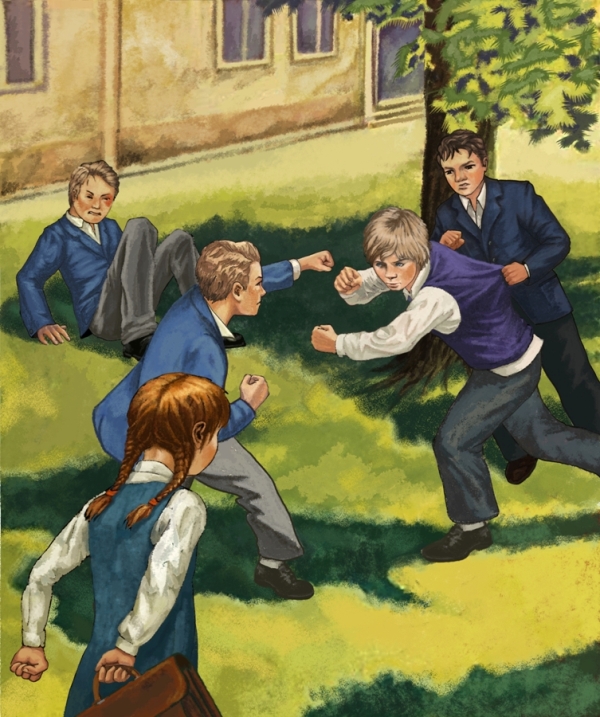 – Оставьте его немедленно! Это не честно, все на одного! – закричала Алиса и, сбросив портфель, ринулась в эпицентр боя.