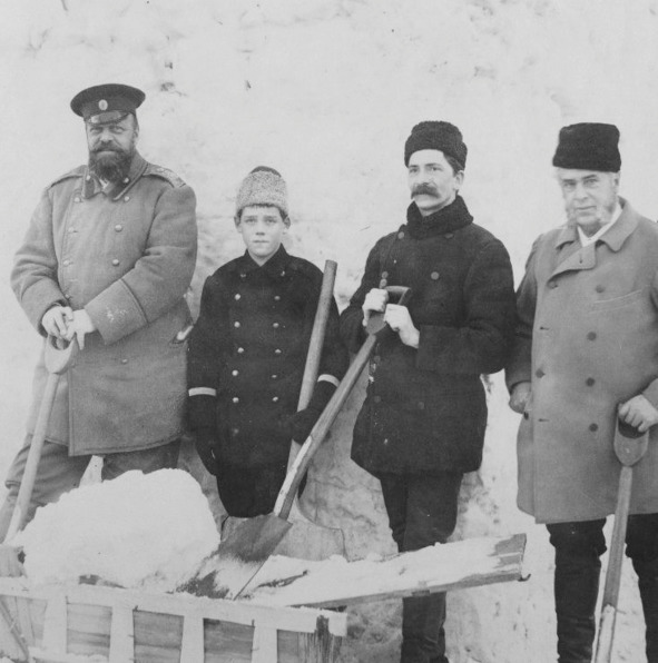 Александр III строит крепость с сыном Михаилом и приближенными. 1890 год