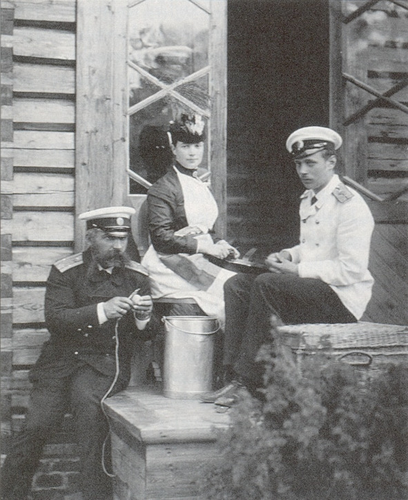 Императрица Мария Федоровна чистит картошку с сыном Георгием на даче в Финляндии. 1890 год