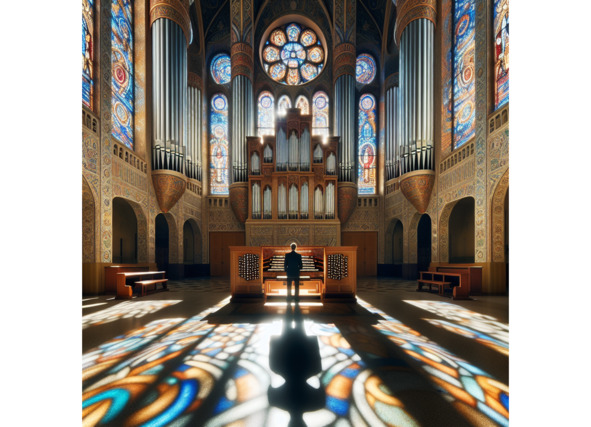 Космической сюитой наполнился храм,Воспрянул фантом в органном соборе.Он композитор концертных программ,Мозаичный силуэт на витражном узоре.Маятника католическая амплитудаПревращает звуки в капли акварели.Виртуозно мастер органным этюдомРаскрашивает музыкальные карусели.