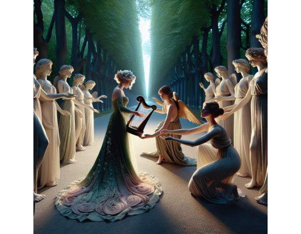К дебрям простилается аллея,На которой встретила я нимф.Любовь на лиру обменяла фея,С поцелуем указавшая на нимб.