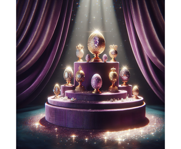 На подиуме пасхальных сувенировКрасуется фиолетовый вельвет,И яйца в импозантных мундирах —Императора ювелирный раритет.Под матовой скорлупой начинка:Курочка – несушка золотых корон.Еще сюрприз – ажурная песчинка,Из рубина филигранный кулон.Роскошна коронационная поделка —В гравированной оболочке карета.Велюром и златом редкая отделкаПрячет тайну потери бриолета.Над символикой царской власти —Романовых миниатюрные портреты.Представители правящей династииХранят стальную модель планеты.Вершину отточенного мастерстваБукетом лилий увенчала Мадонна.Стрела Амура направлена всегдаИз лука в пылкий факел Купидона.Бесподобный из платины ассортимент —