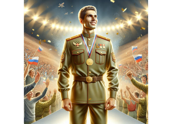 Под триколор ликует стадион,Не одна победа, не одна медаль,В форме хаки русский чемпионОткрывает народный фестиваль.Независимую возвели державу,Теперь она завидный дипломат,Окрыляющую заслужила славу,Пиетет за атлетический формат.