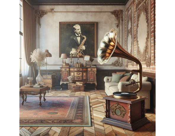 Оживляет антикварный граммофонС пластинки духовые инструменты.С соло выступает тенор-саксофонПронзительно под аккомпанементы.