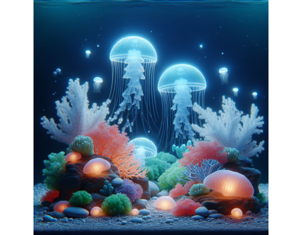 Виляют люминесцентные медузыПод сопрано оперного вокала.Развеиваются их слизистые блузыНад помостами рифового коралла.
