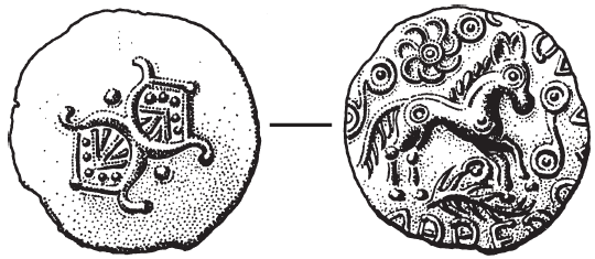 Эти примеры показывают нам, какую заботу проявляли ученые кельтского мира, в том числе, несомненно, друиды, к стандартам грамотности. О том же свидетельствуют таблицы календаря Колиньи, которые будут рассмотрены в следующей главе. В последнее время было показано наличие косвенных свидетельств импорта папируса на Британские острова в период между походами Цезаря и Клавдия. Это дает серьезное основание полагать существование относительно большого числа грамотных людей среди ученых и торговцев, что подтверждают как надписи на монетах, так и надписи римскими буквами на керамике, произведенной до римских завоеваний в Камулодунуме (Колчестер).