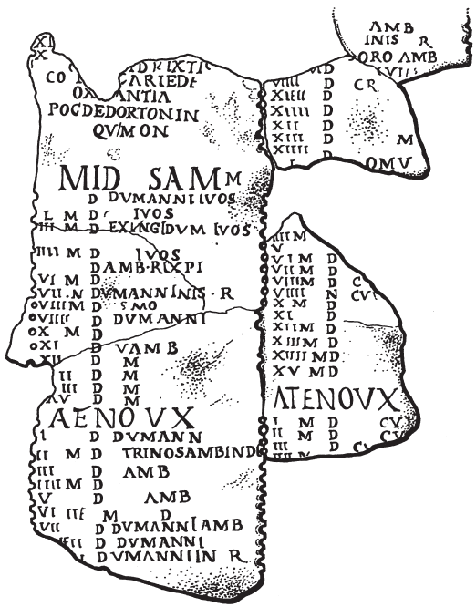 Рис. 5. Календарь Колиньи: часть уцелевшей таблицы с названиями месяцев