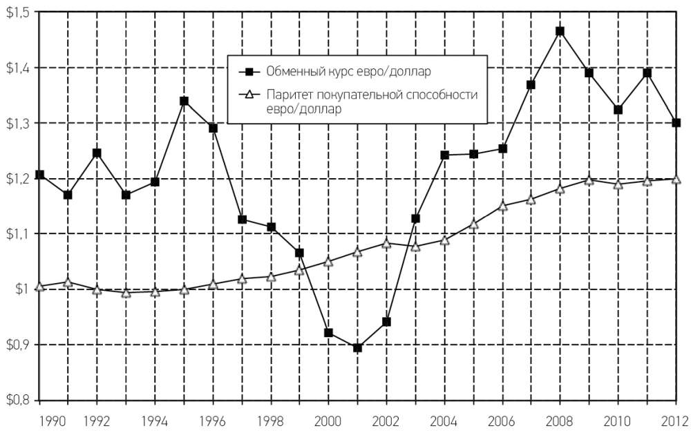 Обменный курс и паритет покупательной способности: евро/доллар