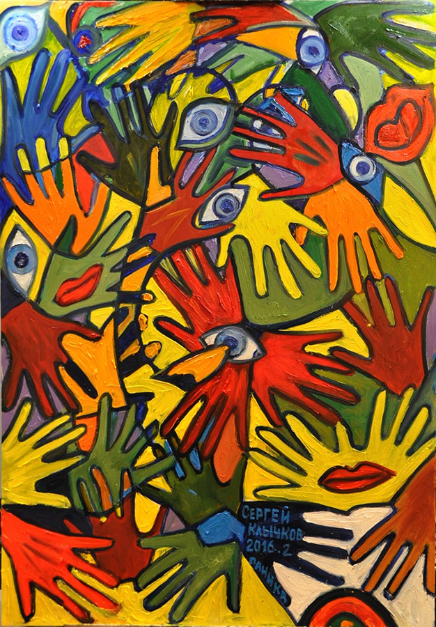 Ян подошел к стене, на которой висела абстрактная картина под названием “Паника”. Разноцветные ладони, глаза, губы – все перемешалось в безумном орнаменте цветовых пятен.